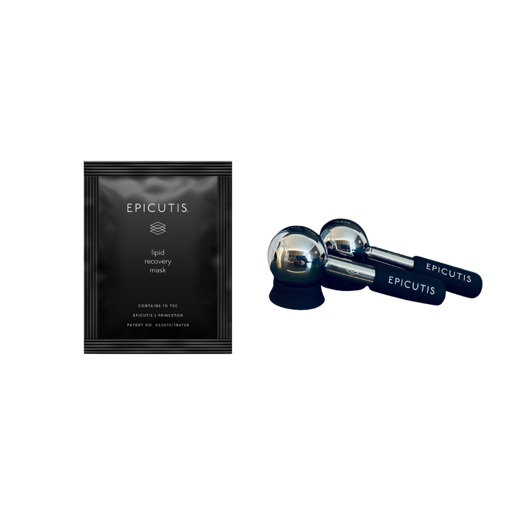 Start with the Epicutis Lipid Recovery Mask, a barrier-repairing formula designed to soothe compromised skin, replenish essential lipids, and restore balance. While the mask is on, glide the Epicutis Ice Globes over the skin to enhance depuffing, calm redness, and help drive ingredients deeper for a more effective treatment.