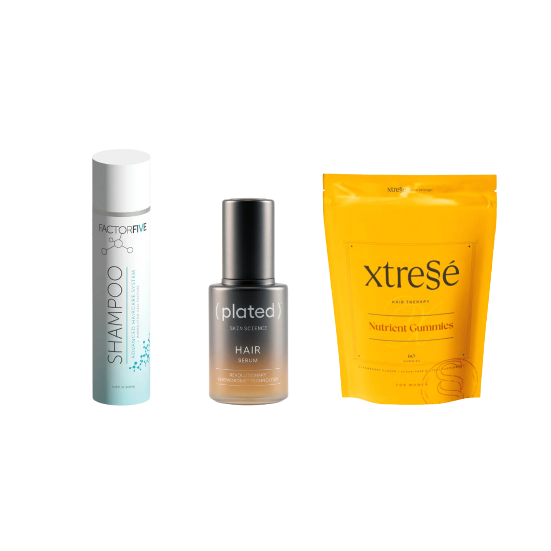 Transform your hair care routine with the ultimate growth-boosting trio. The Hair Trifecta combines the power of Factor Five Shampoo, the advanced technology of Plated Hair Serum, and the nourishing support of Xtrese Hair Gummies to deliver fuller, stronger, and healthier-looking hair from the inside out.
